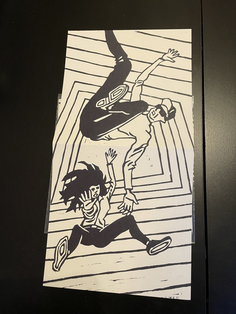A limited 100 copies black vinyl and comes with a thick album cover (300 g) based on an original lino print, designed by graphic designer and comic strip artist Tjark Van Beers (Nijmegen) Instagram: https://www.instagram.com/tjarkvanbeers/.